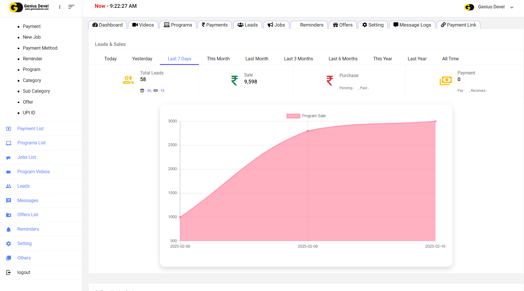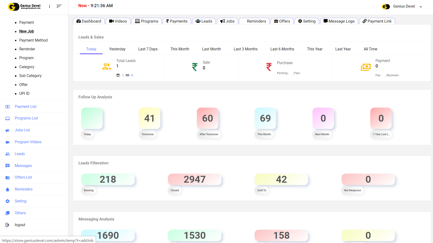 waise to market me bahut se leads tracker or management programs available hai jinki help se aap apni leads ko follow up kar sakte hai but un programs me aapko leads ko manul folloup kar ke unka status update karna padta hai and un programs i hope auto whatsapp followup ka feature bhi nahi diya hai but is program me aap apni leads ka folloup whatsapp par kar sakthai followup date automatic update hogi and har baar ek new message jaaega saath hi aap yaha par manual bhi folloup update kar sakte hai.